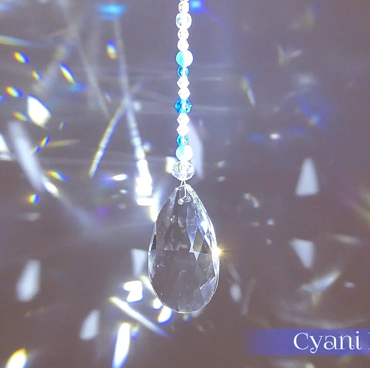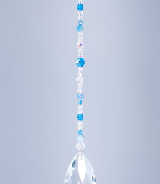 At the bottom there is a gorgeous cut glass pear shaped prism (which will make all the sparkly rainbows when the sun is on it) which is approx 5cm long.