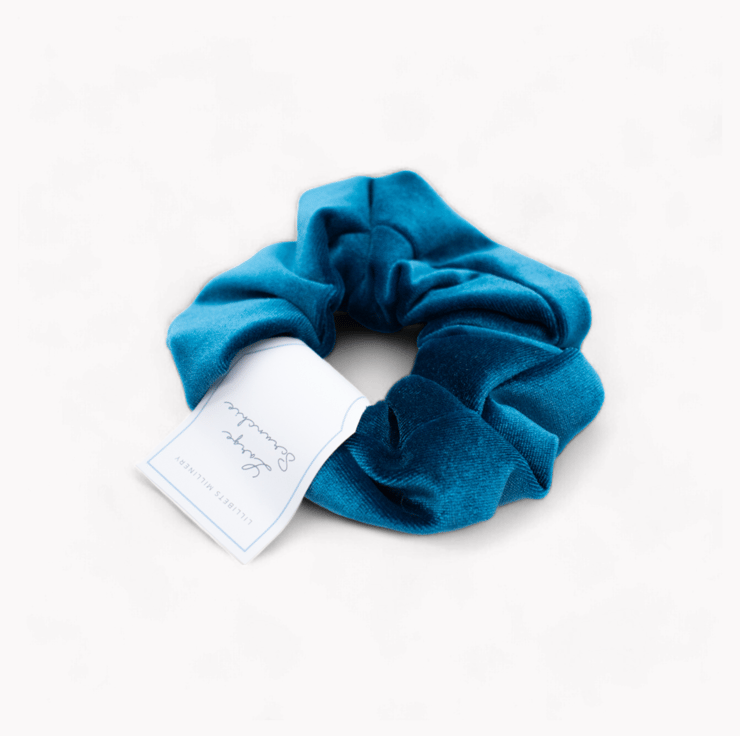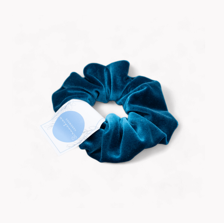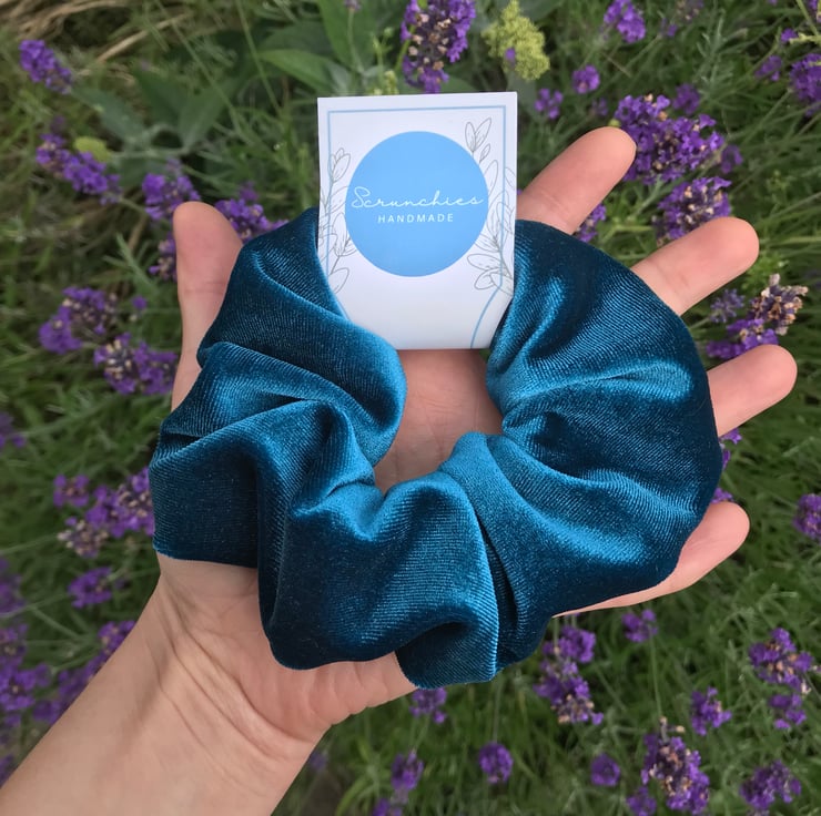 Large velvet scrunchie handmade in a sumptuous teal blue velvet fabric.