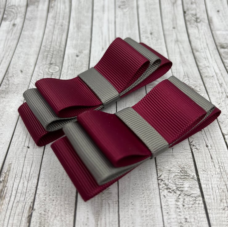 Our straight bows are handmade here in our little shop. They are made from the best quality Grosgrain ribbon. These bows are simple and classic and look extremely smart and go well with the wine and grey School Uniform.