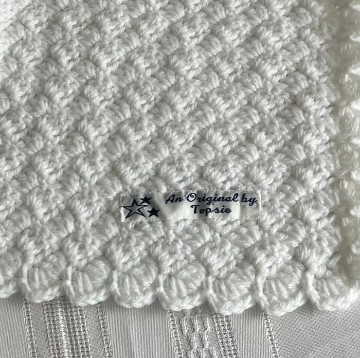 You will keep your baby or toddler really warm with this knitted blanket made from Bernat Sport wool in White in a Brickpattern.It was hand-made by me and is ideal for either a little girl or boy.