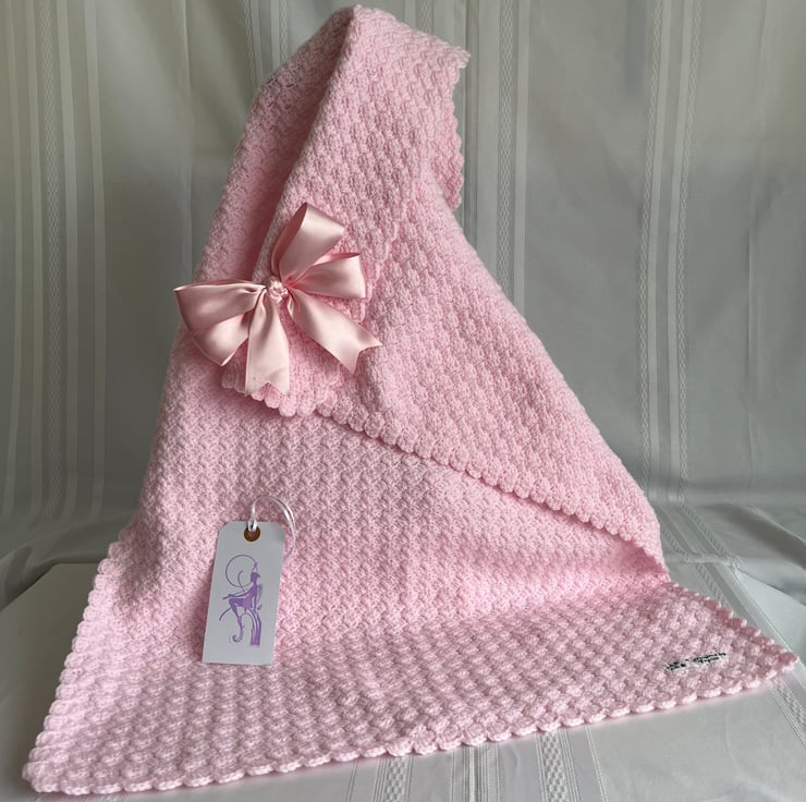 You will keep your baby or toddler really warm with this crochet blanket made from Bernat Sport wool in Pink in a Brick pattern. It was hand-made by me and is ideal for a little girl.