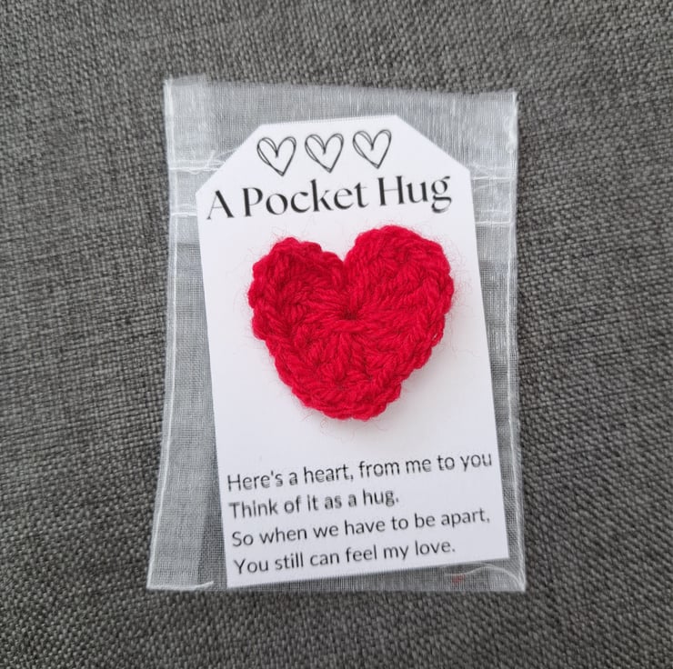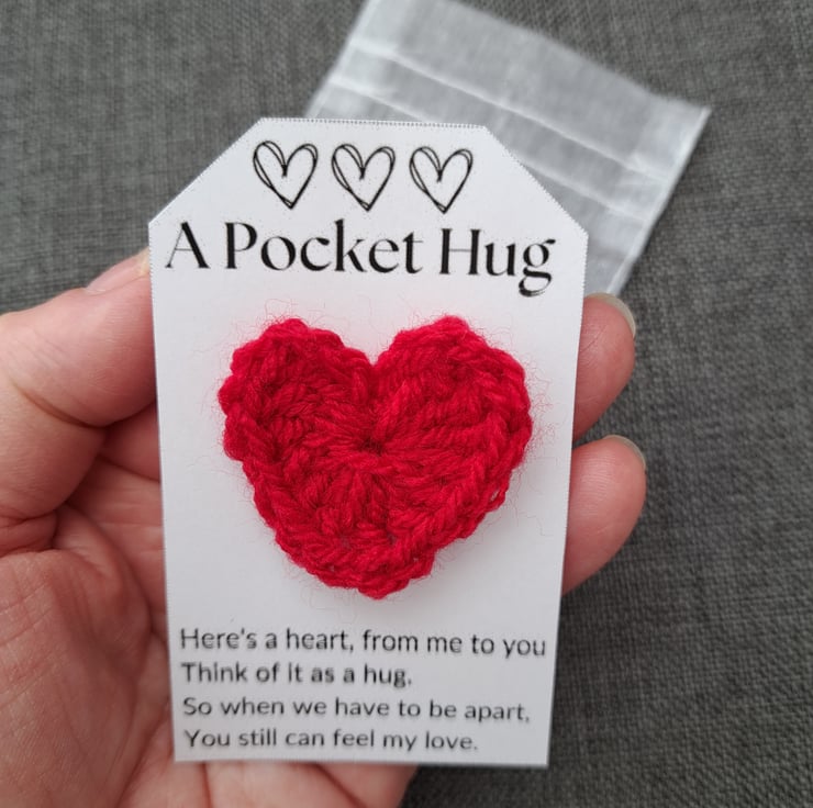 A sweet, handmade, crochet pocket hug. The perfect way to show someone you care.
