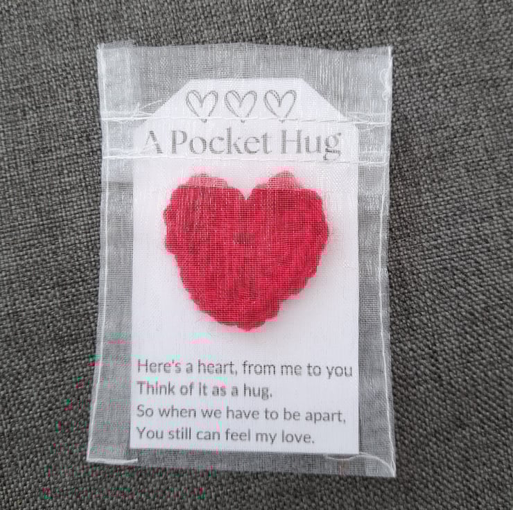 We all need to know someone's thinking of us and wishing us good luck. This little, handmade pocket hug is ideal to keep in your pocket to remind you someone cares as you go about your day!