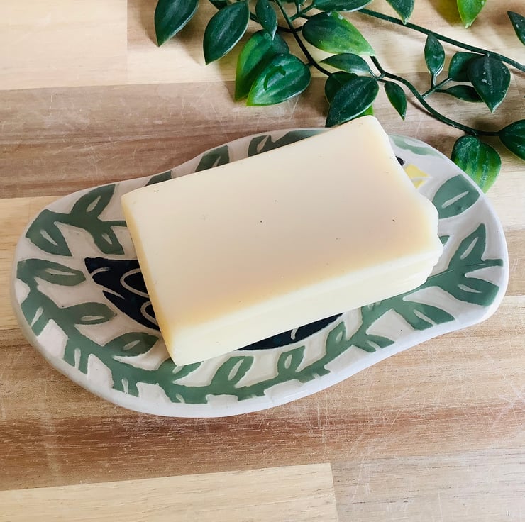 Handmade stoneware lilac flower pottery soap dish.