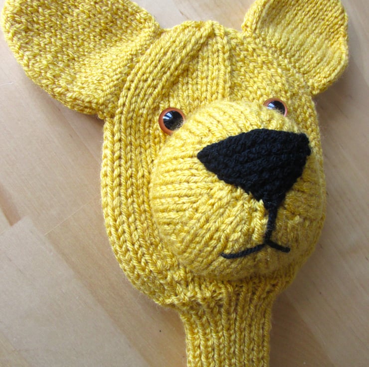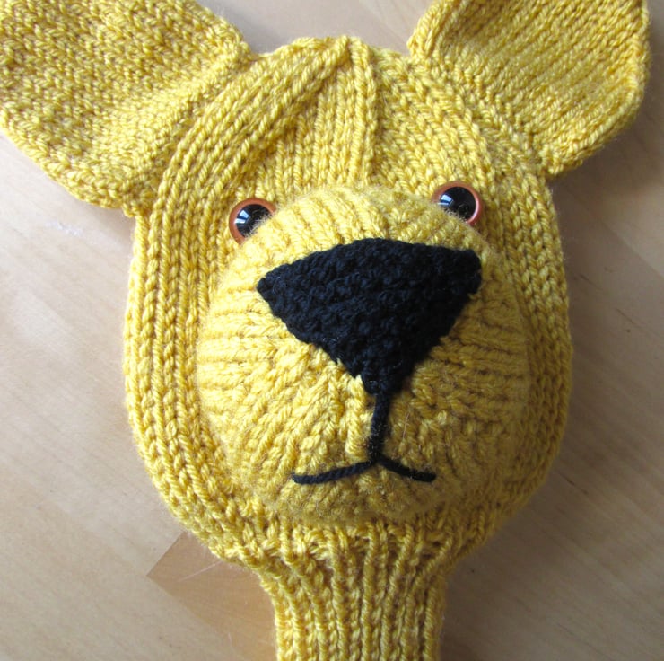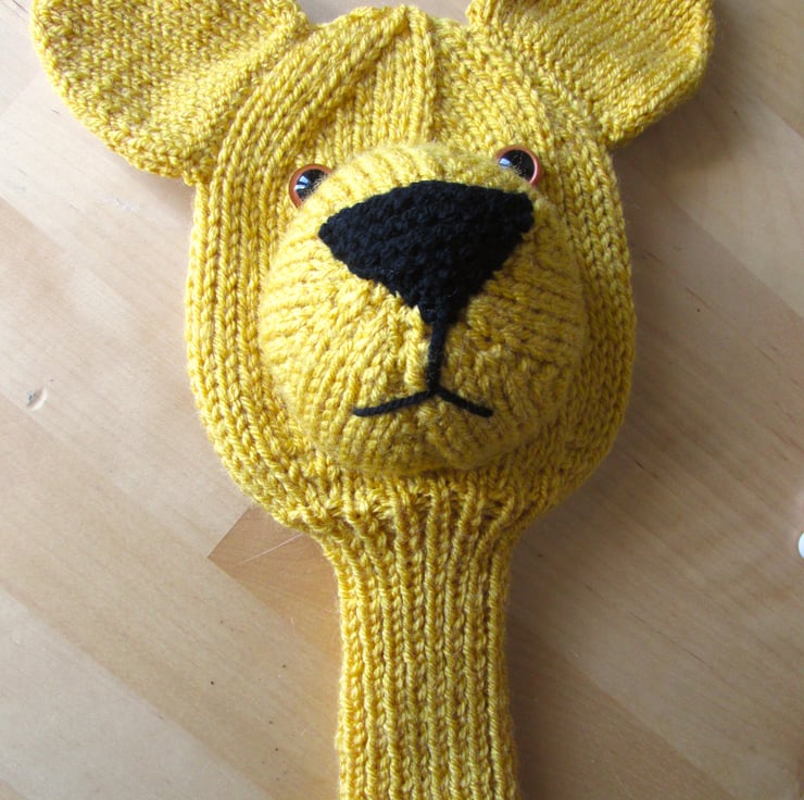 Hand knitted cover for golf club, suitable for a driver club. Lovely bear design. Ideal gifts for the golfer in the family.