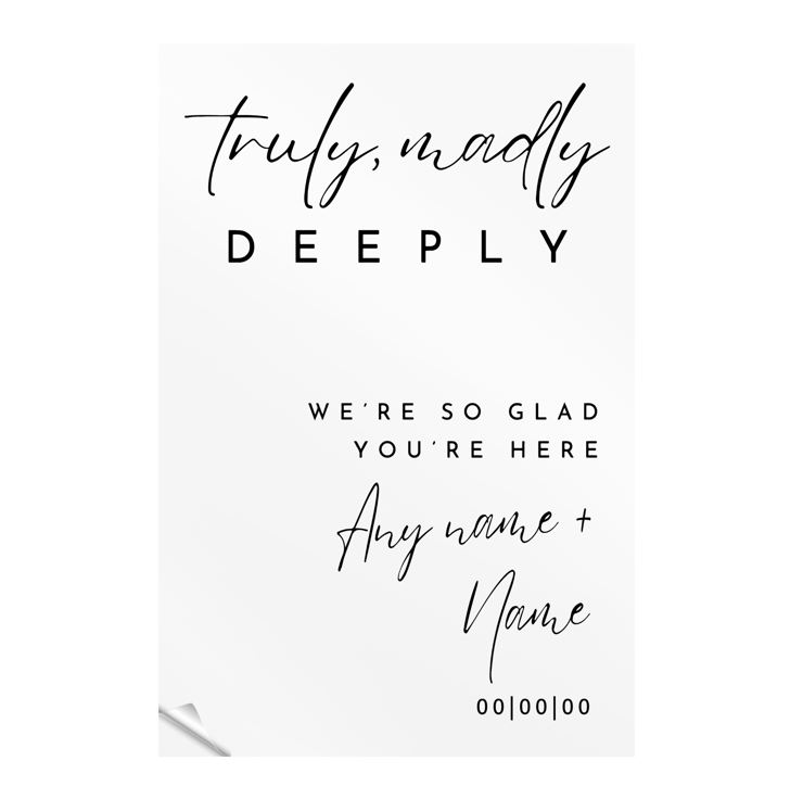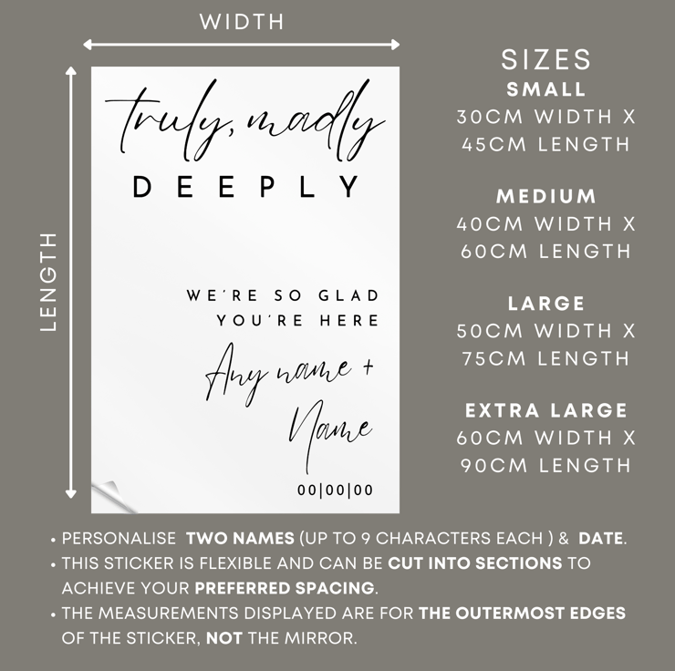 Truly, Madly, Deeply 01 Sticker: Custom Wedding Mirror Decal, Personalised Sign