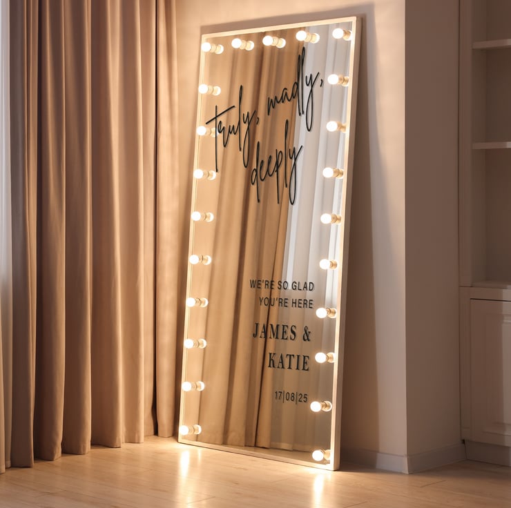 Our customisable sticker allows you to add your names and wedding date, creating a beautiful and memorable addition to your wedding venue.