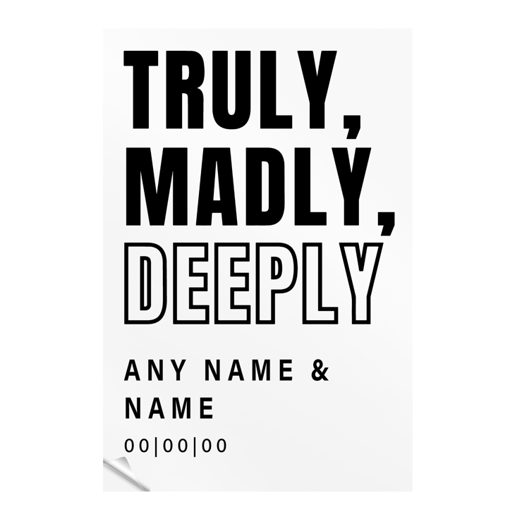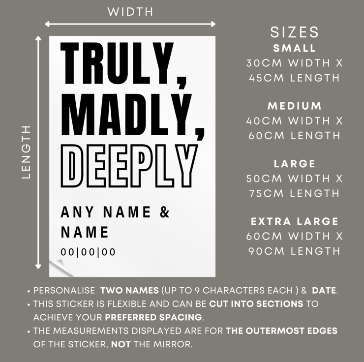 Truly, Madly, Deeply 04 Sticker: Custom Wedding Mirror Decal, Personalised Sign