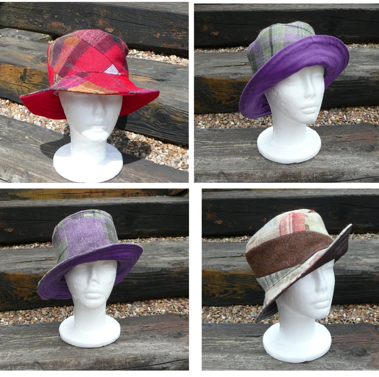 These hats are part of my winter 2024 range, each hat has been constructed from my wool tweed offcuts from my bag making, so every hat is uniquly different. This style is similar to the popular bucket hat, but has a bit more structure and style to it, which means it can be worn in many different ways. Each hat is fully lined in cotton.