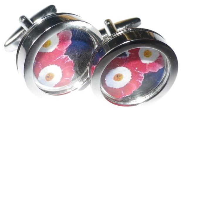 This listing is part of a programme of cufflinks made in my design studio in southern England..... images include graphic art... movies & music... animals & birds... sport,& romance...ships & planes…. plus a wide variety of other themes, all chosen for their vibrancy and visual impact......The cufflinks are crafted from rhodium plated alloy, are highly polished with a deep setting and shaped shank for ease of use, protected with a 15mm perspex disc, and are guaranteed to please menfolk on a wide variety of anniversaries and occasions ……..You will receive your purchase in a neat presentation box, gift wrapped, and with free shipping.