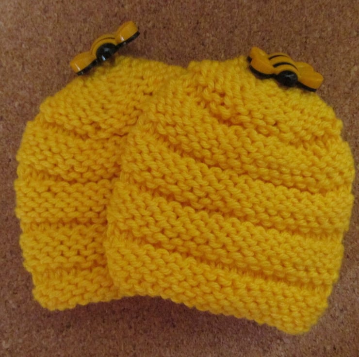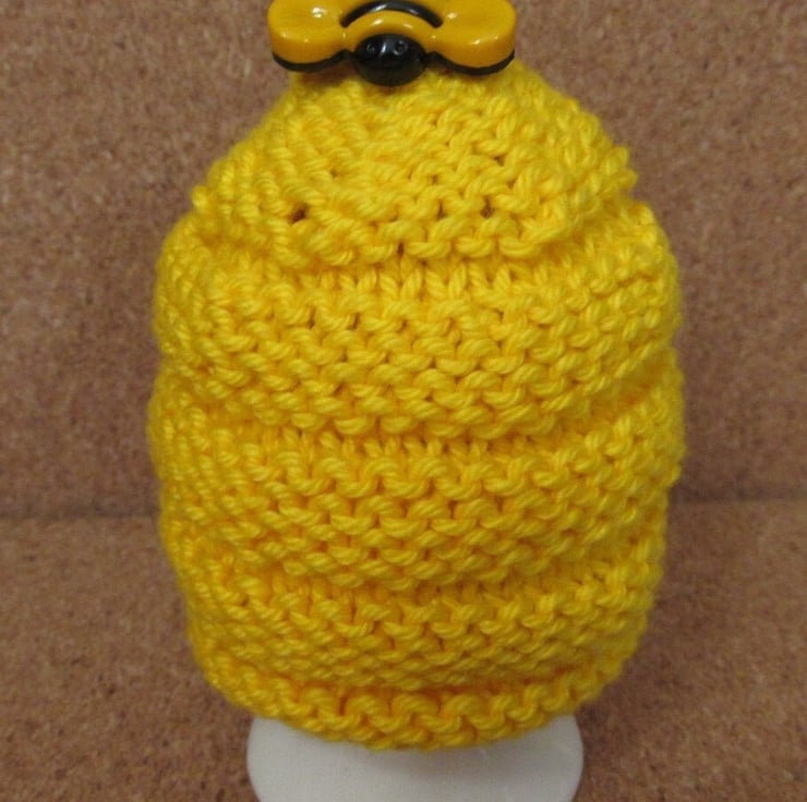 Hand knitted beehive egg cosies for your breakfast table. The cosies are sold singly and are approximately 3 inches high and 5 inches all around the opening. Hand wash.