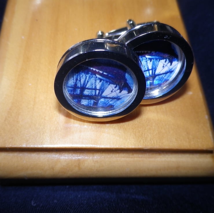 This listing is part of a programme of cufflinks made in my design studio in southern England..... images include graphic art... movies & music... animals & birds... sport,& romance...ships & planes…. plus a wide variety of other themes, all chosen for their vibrancy and visual impact......The cufflinks are crafted from rhodium plated alloy, are highly polished with a deep setting and shaped shank for ease of use, protected with a 15mm perspex disc, and are guaranteed to please menfolk on a wide variety of anniversaries and occasions ……..You will receive your purchase in a neat presentation box, gift wrapped, and with free shipping.