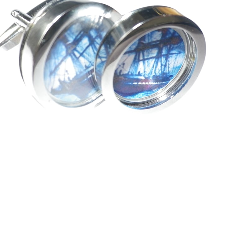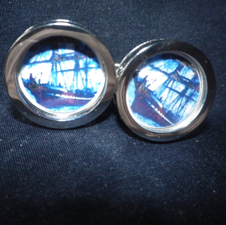 Pirate Ship Cufflinks, free shipping, gift wrapped, dramatic image, Ref 0939