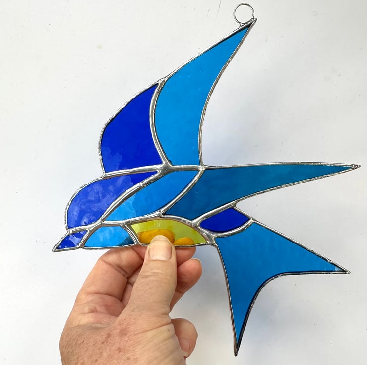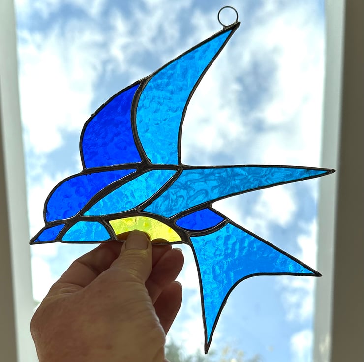 Swallow suncatcher made from beautiful stained glass by Carole's Glass.