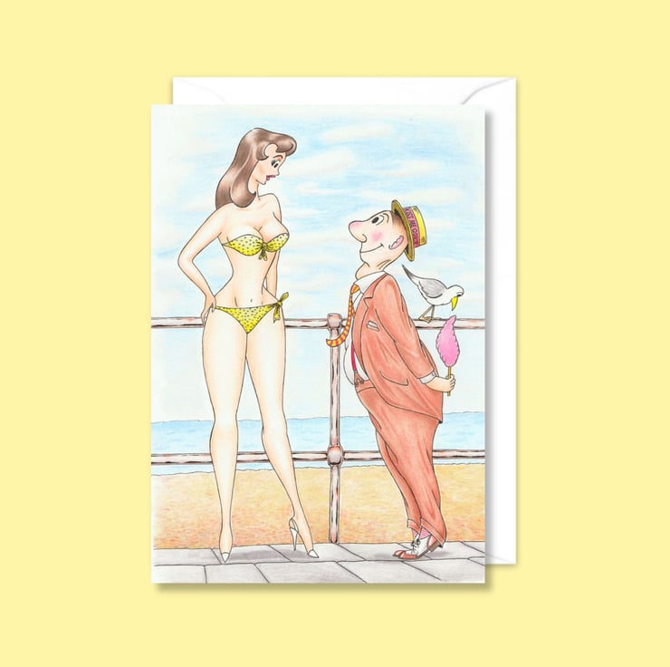 Beach Holiday Greeting Card: Seaside Postcard Humour Illustration (801)