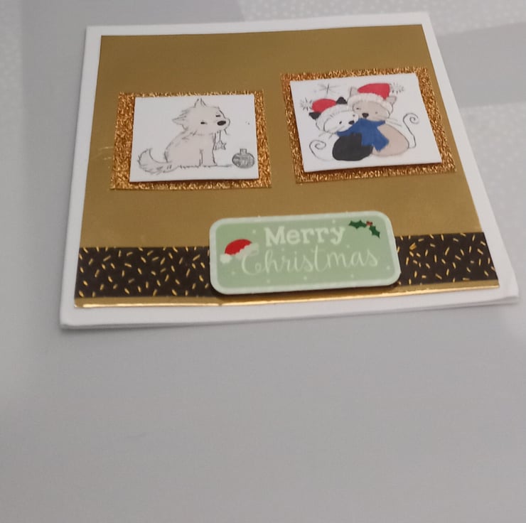 This is a set of 4 assorted seasonal greetinvs cards. Each card is foiled card and glitter card and is embellised with a seasonal design. The cards are made in an easel design and each card measures 6 x 6 inches when folded flat. The insides of the cards contain a sentiment which enables the card front to stand up when it is on display.