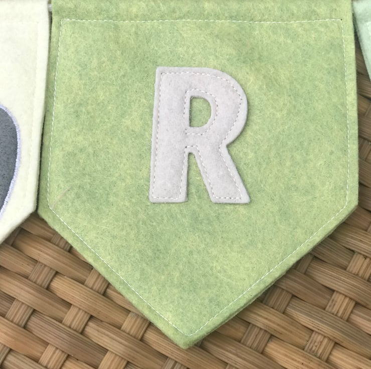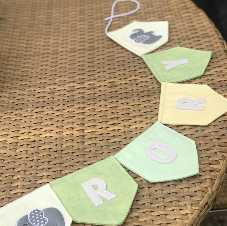 Each felt letter is sewn on so no risk of them coming off. A lovely gift for a baby shower, new baby or a beautiful decor which will be a lovely keepsake named garland for years to come