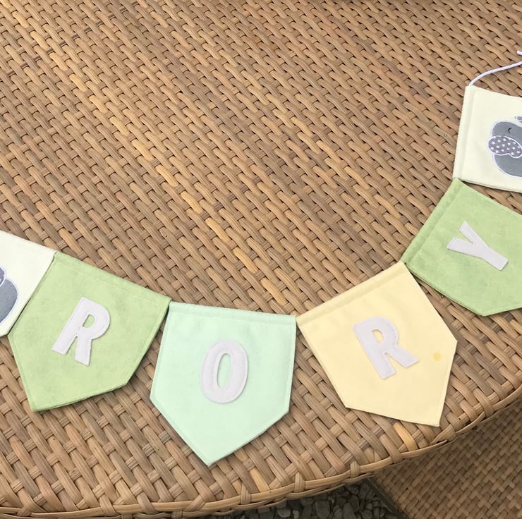 This luxury bunting is personalised with any name you choose, making a really cute name banner for a nursery or bedroom in neutral colours.