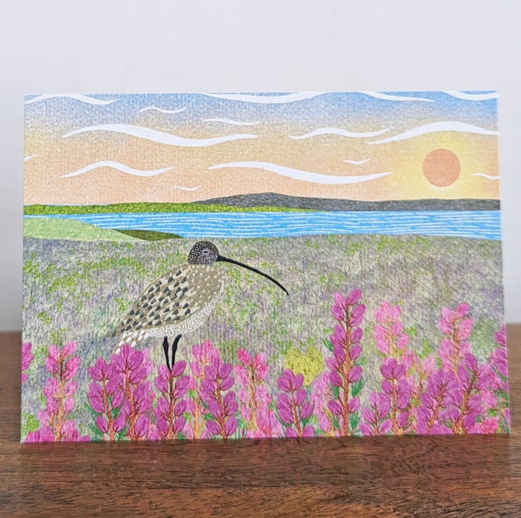 The summery curlew was painted in summer 2023. We had an amazing June in Cumbria this year and it was super hot! In the evenings I walked my dog on the moor where it was a little cooler, and most evenings we saw a breeding pair of curlews singing their beautiful song. These amazing birds with their distinctive long down-curled bill, are on the red list and there are less than 60,000 breeding pairs left in the country, so every time I spotted them it really was quite magical.