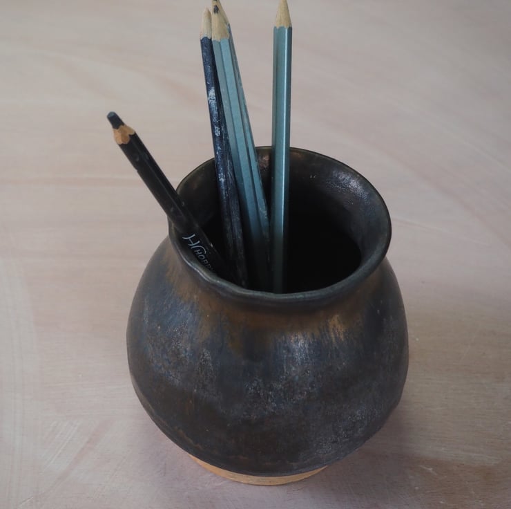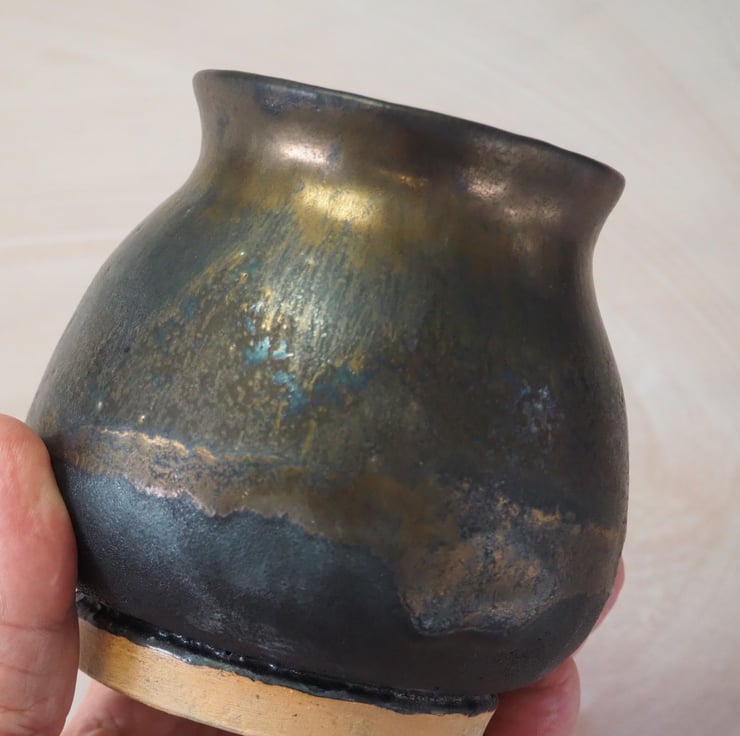 Small stoneware vase, hand thrown on my potters wheel. Antique gold and matt black glaze giving an aged effect.