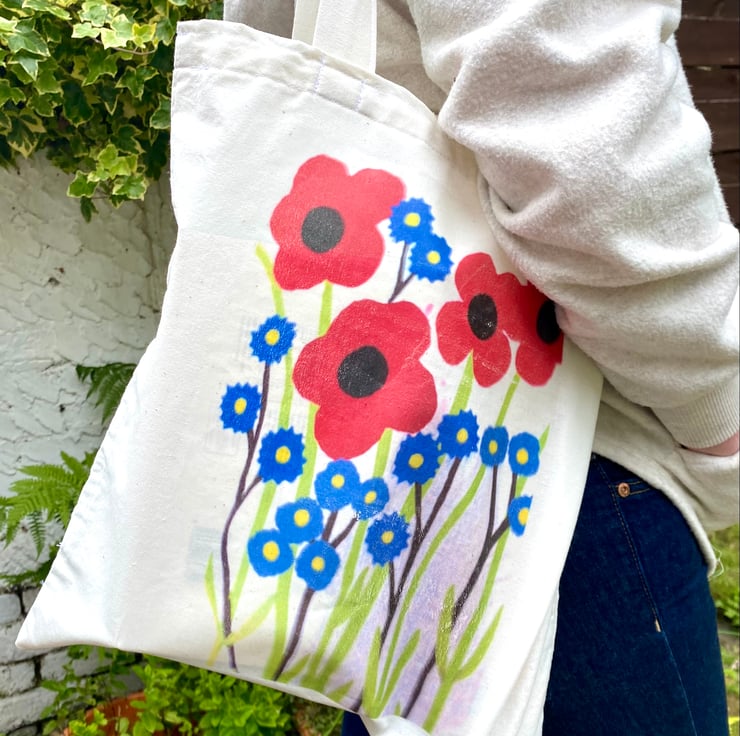 I was the lucky recipient of some pristine pre used cotton fabric, which seemed perfect for tote bags. I’ve made them all unique with prints of my embroidered textile works.