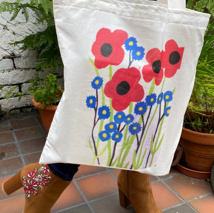 The poppy and corn flower print, is of a collage, that I stitched onto a dress which was worn in a pageant a few years ago, another example of repurposing!!