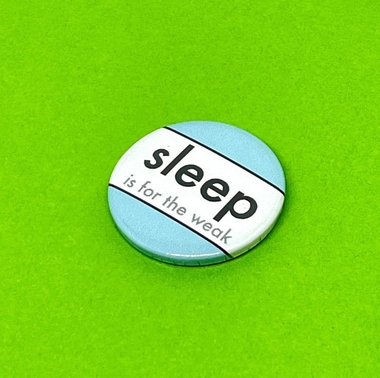 Sleep is for the weak. Badge, pocket pebble, magnet or keyring. Insomniac gift