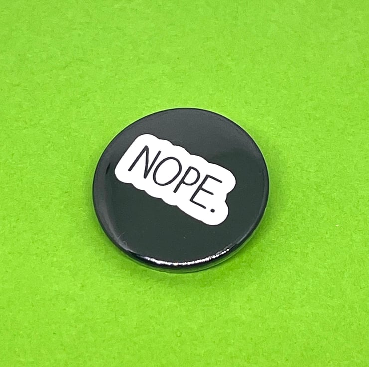 Nope badge. Badge, pocket pebble, magnet or keyring. Because No is a complete se