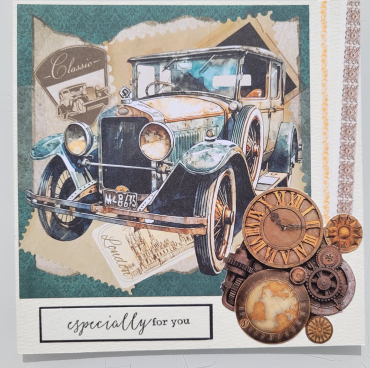 Postage included in price. Handmade Decoupage card suitable for Birthday, Retirement, Anniversary or other special occasions.