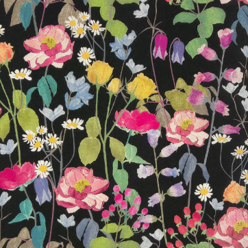 I love colour and I am particularly drawn to the delicate prints you can find in Liberty Tana Lawn and Cotton Poplin. However, sometimes I find myself attracted to less colourful prints and I buy them and never use them. So the midnight series was born, little creatures in blacks, blues and greys with dark prints that please me. Fairytale Forest is just perfect for a tiny pink midnight mohair mouse. The pink of the vine flowers picking up the pink of Amice's fur.