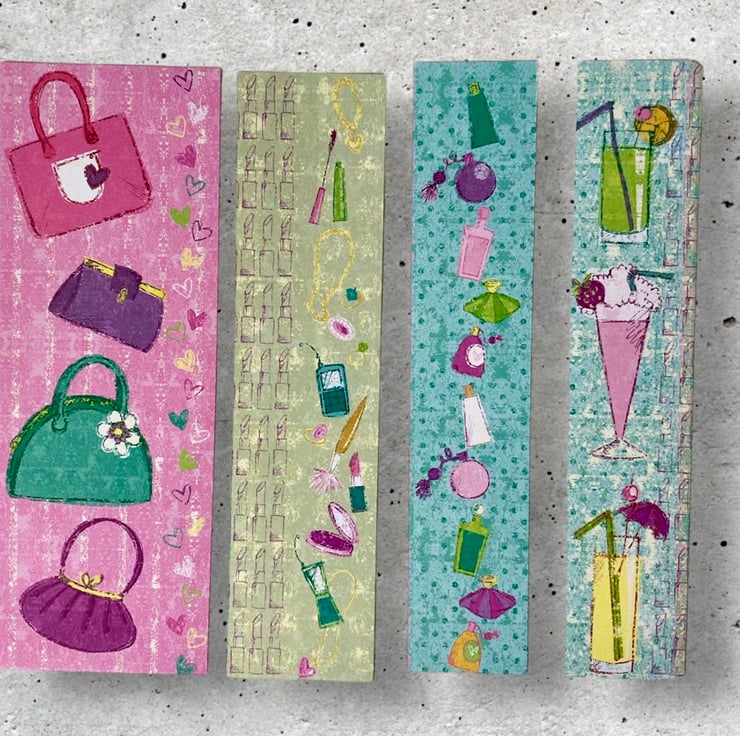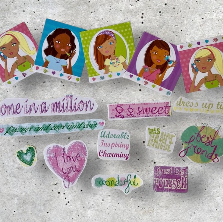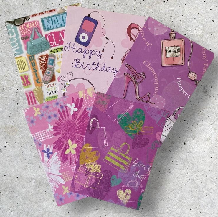 5 pieces of 15 x 10 cms paper decorated with a teenager inspired design