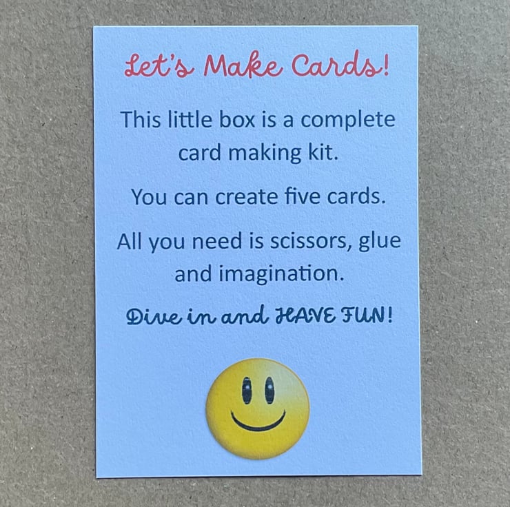 All you need is scissors, glue and imagination to make five handmade greetings cards. This little kit contains everything you need to make handmade cards for an older child or teenager.
