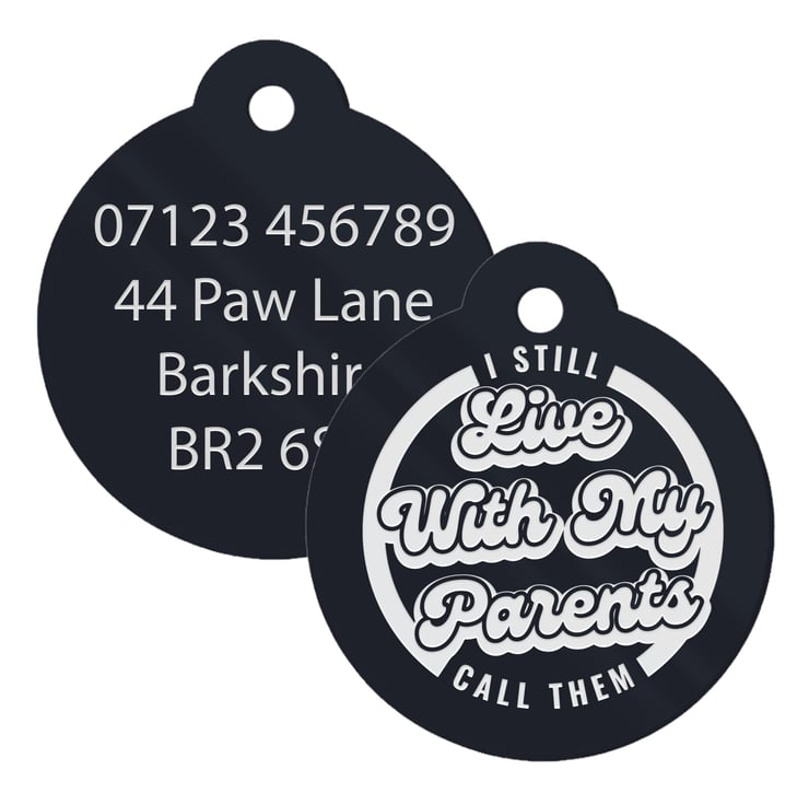 Live With My Parents - Retro: Personalised Dog ID Collar Funny Custom Tag