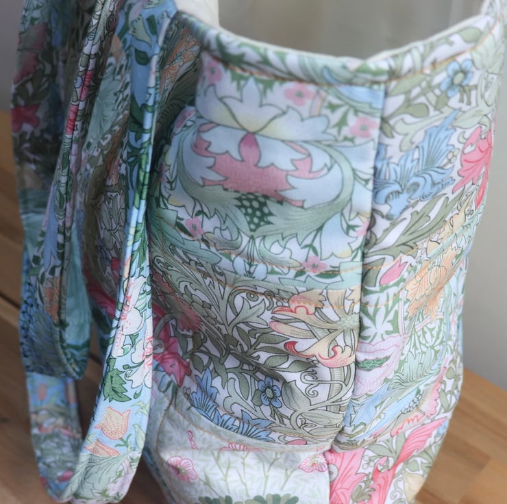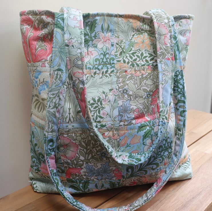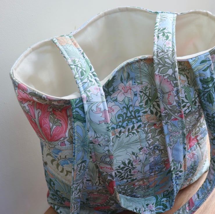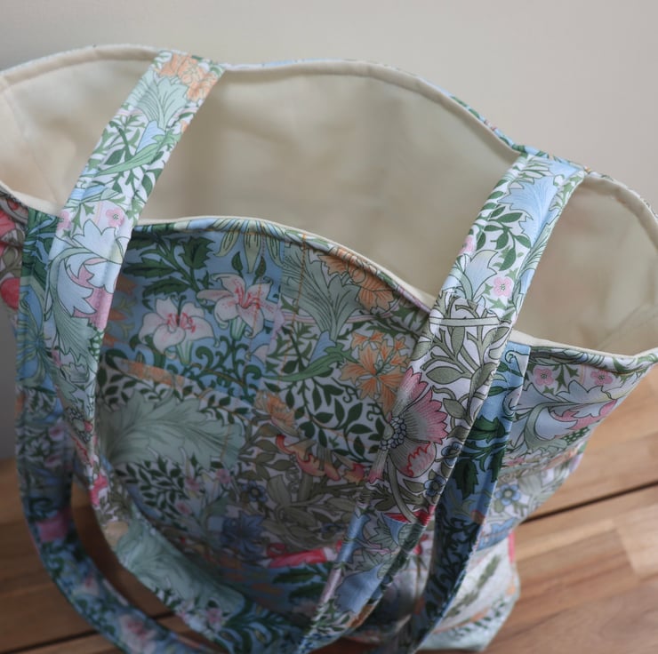 The Size of this tote bag is 15 x 15 inches not including handles, and is fully lined.