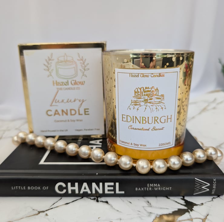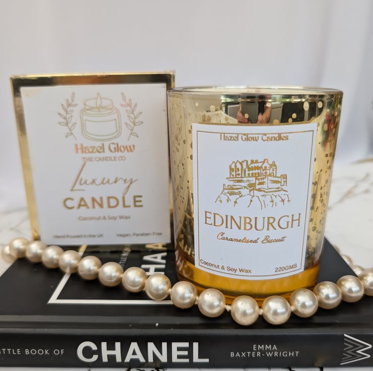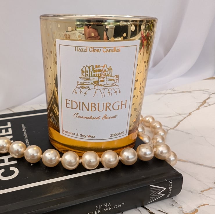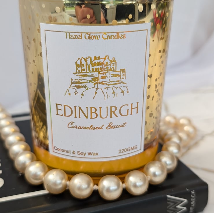 The inspiration behind my Edinburgh Castle candle on Folksy is rooted in my passion for travel and the unique charm of iconic destinations. Edinburgh Castle, a majestic symbol of Scotland's rich history, is beautifully depicted on the label in gold foil, adding a touch of elegance and grandeur. The fragrance, "Caramelised Biscuit," pays homage to the beloved Scottish shortbread, evoking the warm, buttery aroma that is synonymous with Scottish hospitality. This luxurious candle encapsulates the essence of Edinburgh, combining historical splendor with the comforting scent of a timeless treat.