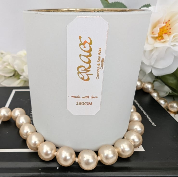 The inspiration behind my "Grace" candle on Folksy is to create a piece of timeless beauty that elevates any space. Encased in a stunning white container with a gold interior, "Grace" is adorned with hand-poured wax shells and crystals, making it an exquisitely pretty candle. Fragranced with the delicate and romantic scent of rose, this candle is a celebration of elegance and sophistication to be perfect for luxury lovers and lovers of beauty. Beyond its aesthetic appeal, "Grace" is designed to be eco-friendly, allowing it to be refilled time after time. This commitment to sustainability ensures that "Grace" is not only a beautiful addition to your home but also a mindful choice for the environment.