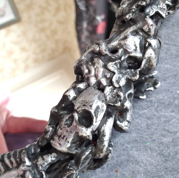 This is a beautiful handmade piece is one of a kind, and is full of intricate details bring gothic beauty into your home! The mirror can be easily hung