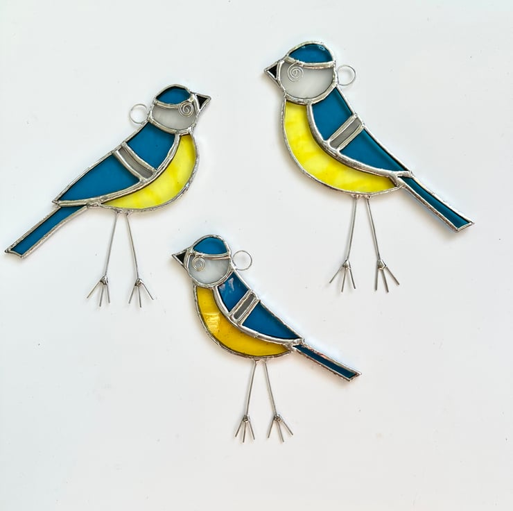 Stained Glass Blue Tit 3 Suncatcher - Handmade Hanging Window Decoration