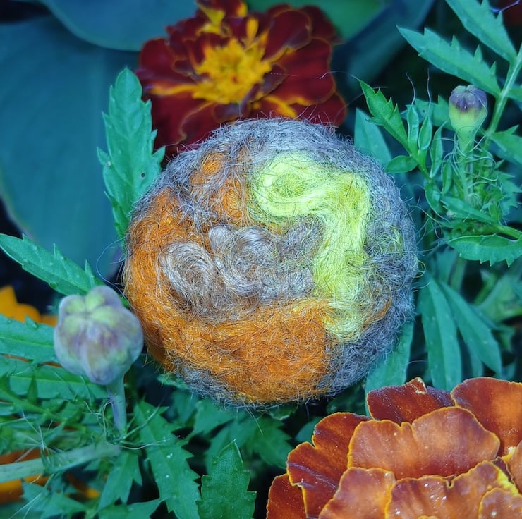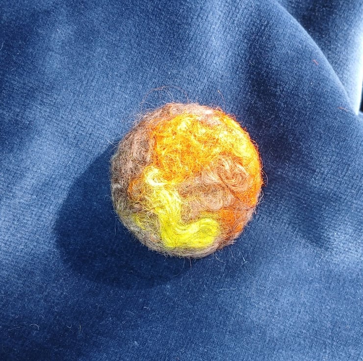 This brooch is part of a collection of Planet brooches. They are all made using the fleece from my own Gotland flock.