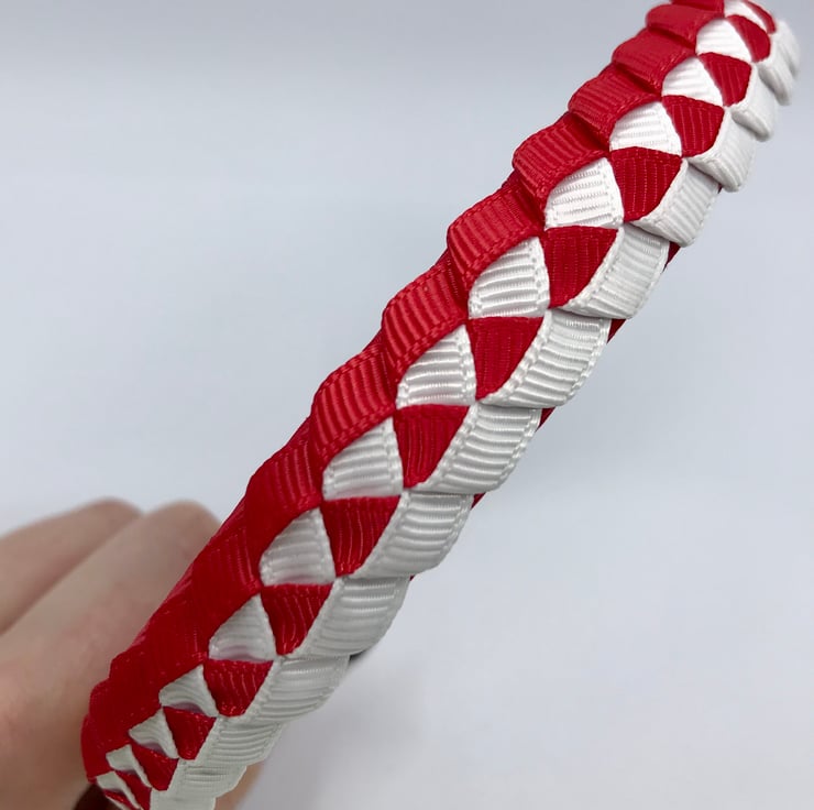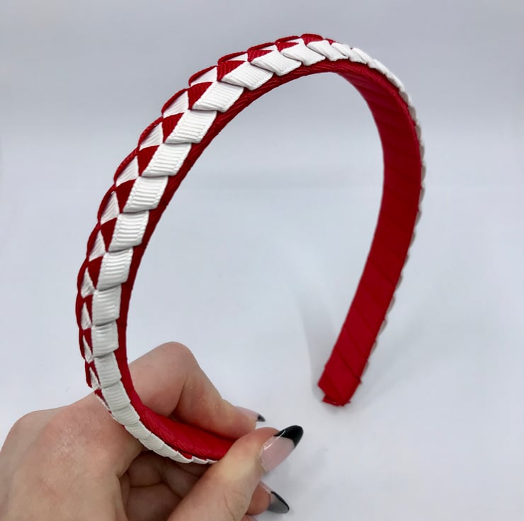 Our pleated hairbands are handmade here in our little shop. They are so cute the could compliment any school Uniform with red and white to keep those sneaky little curls from straying into your little one's eyes.