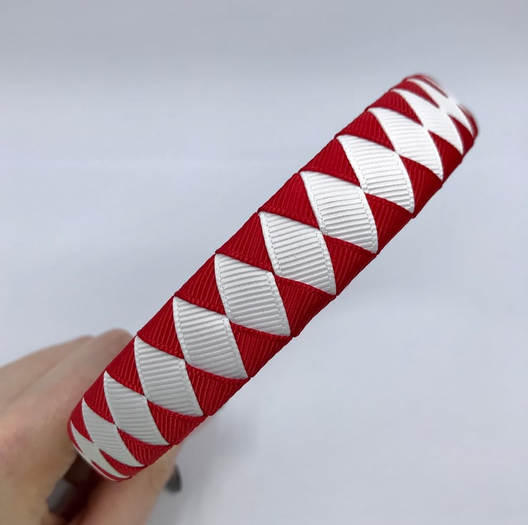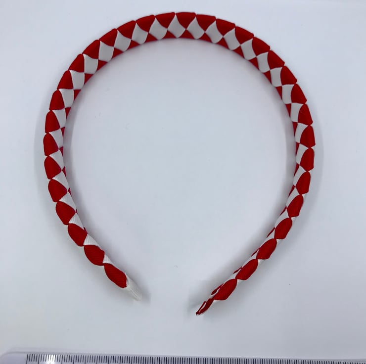 Our Diamond pleated hairbands are handmade here in our little shop. They are so cute the could compliment any school Uniform with red and white in it. They are ideal for keeping those sneaky little curls from straying into your little one's eyes.