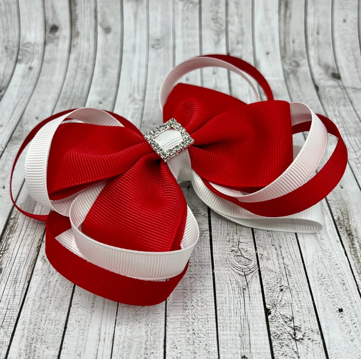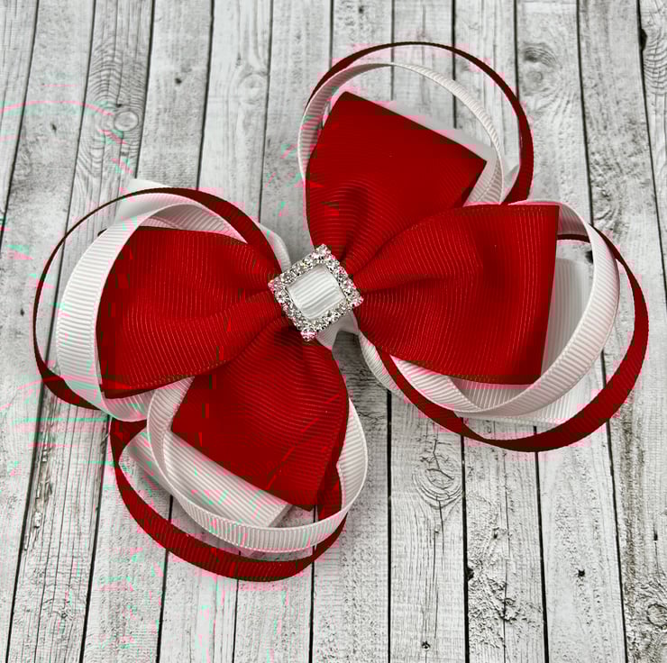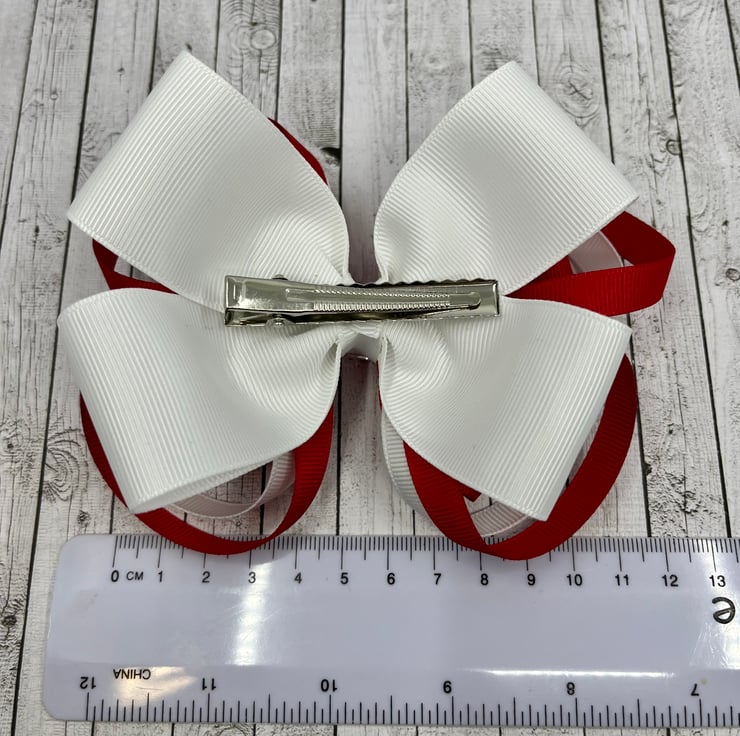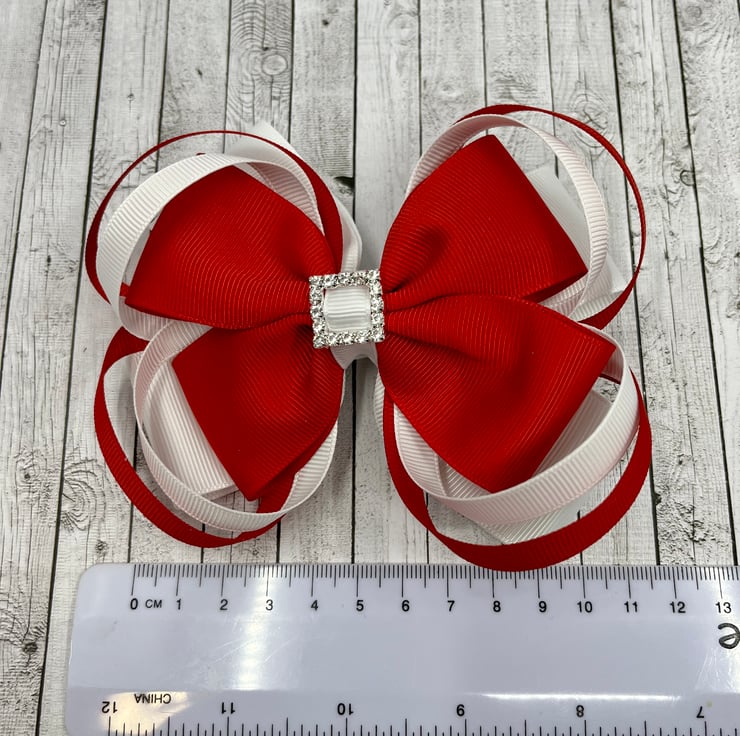 Large 5 inch Red and White Double Layer Bow with Double Loops