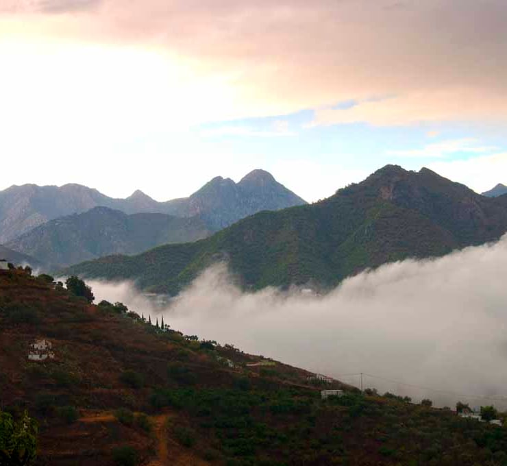 Storm clouds surrounding the countryside near The Moorish village of Frigiliana nestling in the Sierra de almijara mountains Costa del Sol Andalusia Spain a photographic print photography by Andy Evans Photos