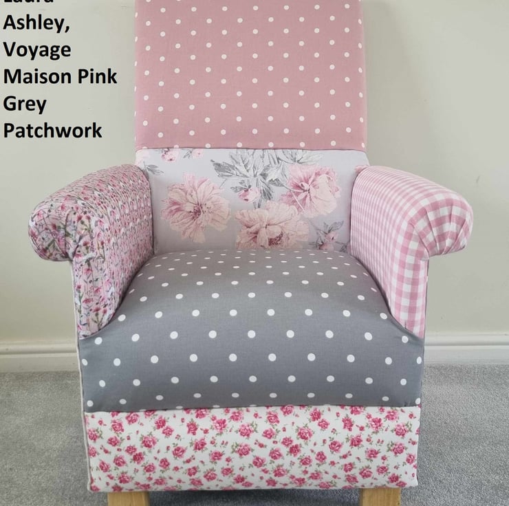 This is a fully assembled, sturdy ADULT'S chair, which has been made myself. I am a professional upholsterer with over 33 year’s experience, and have made this sturdy little armchair using a mixture of Laura Ashley, Voyage Maison and Clarke fabrics.