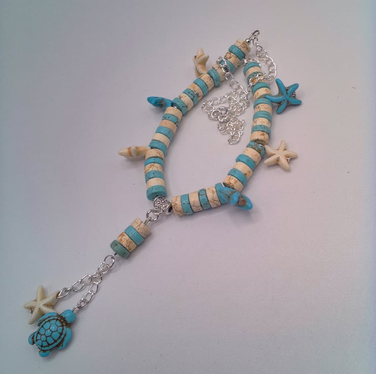 Blue and White Howlite Bead Starfish & Turtle Necklace & Earrings, Gift for Her, Birthday Gift, Anniversary Gift, Mother's Day Gift, Gift for Her, Seaside Themed Jewellery, Howlite Necklace, Howlite Earrings, Blue and White Jewellery, Turtle Jewellery, Starfish Jewellery