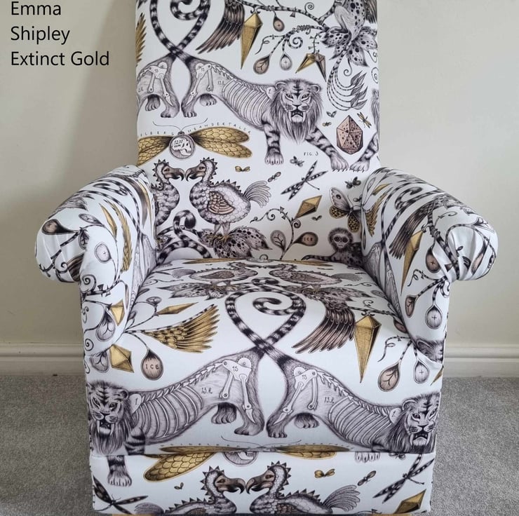 Emma Shipley Extinct Gold Fabric Adult Chair Armchair Accent Lions Animals Small
