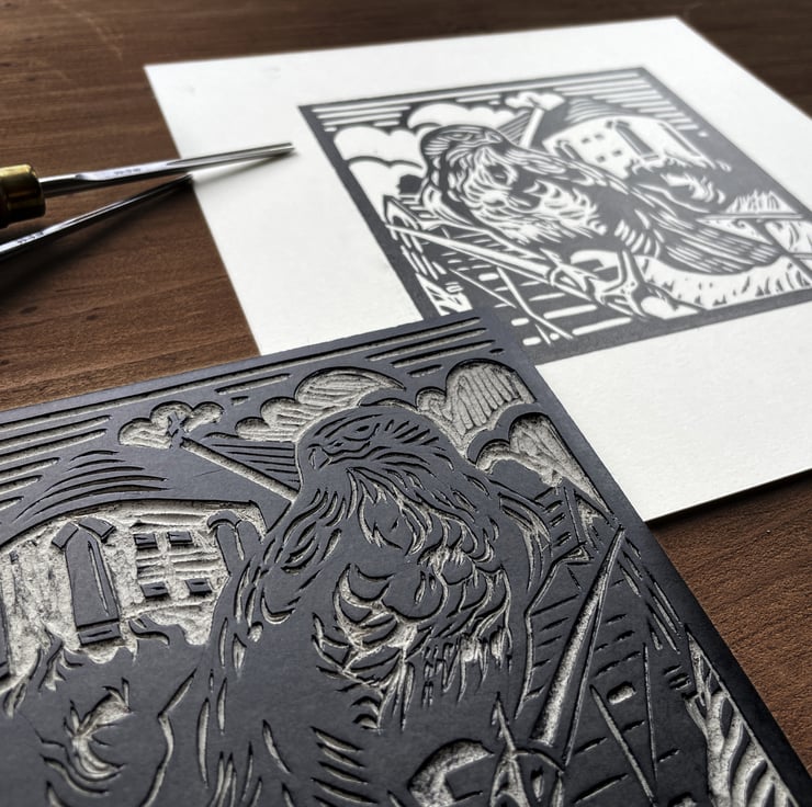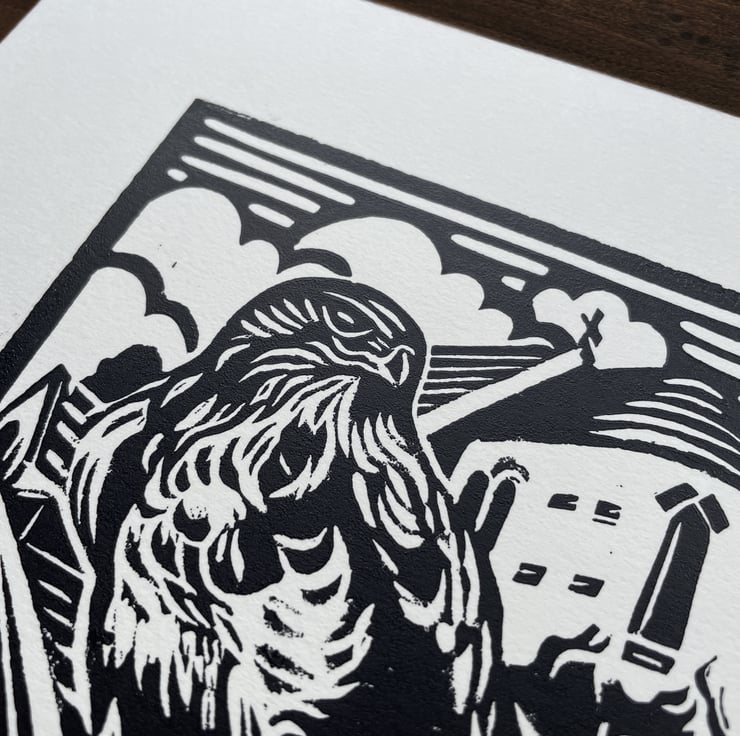 Burton Joyce Buzzard - linocut print