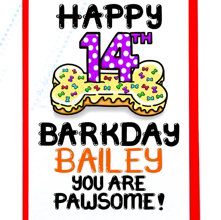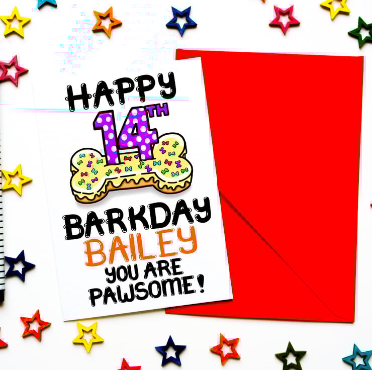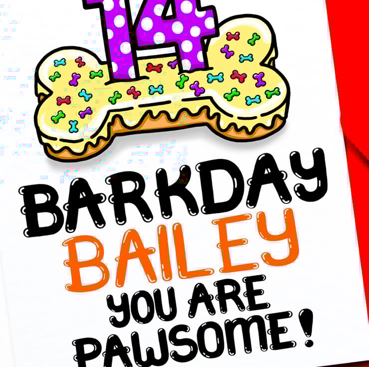 Personalised Dog 14th Birthday Card For Puppy, Fur Baby, Furry Child