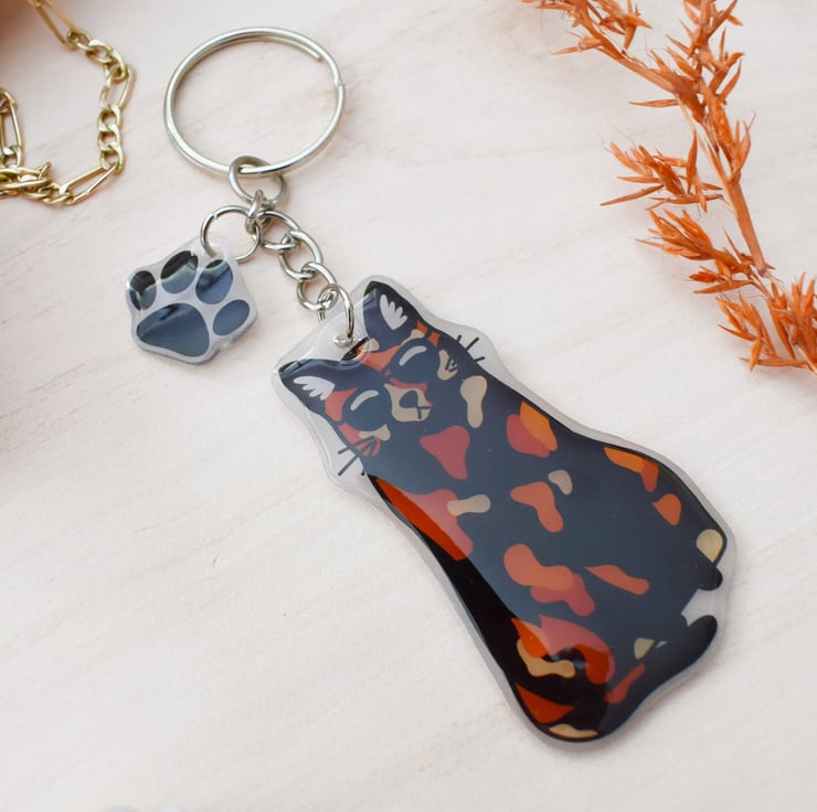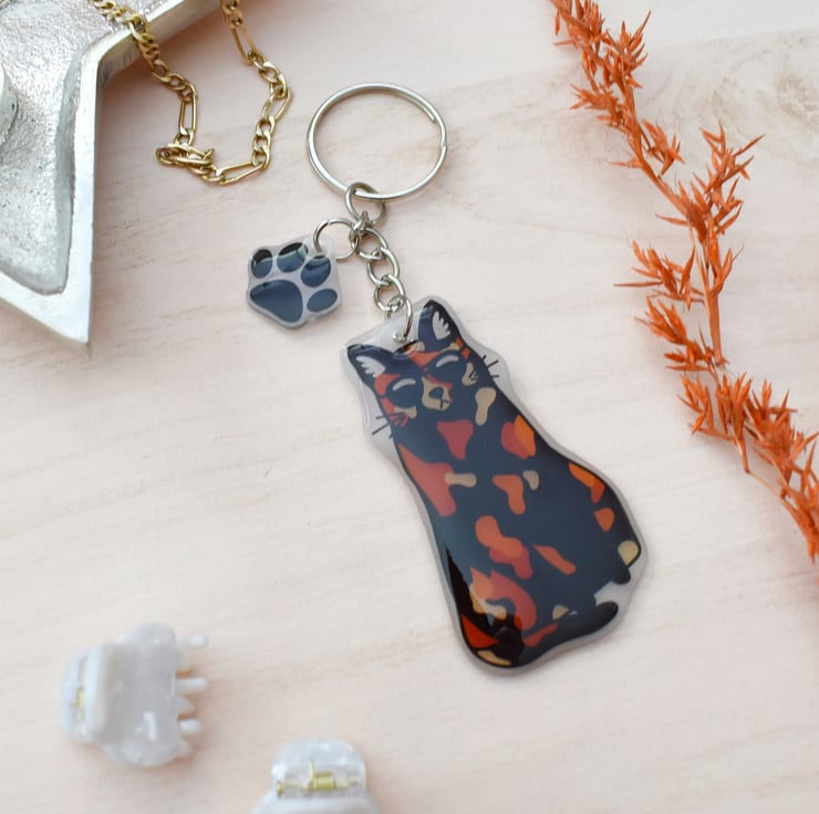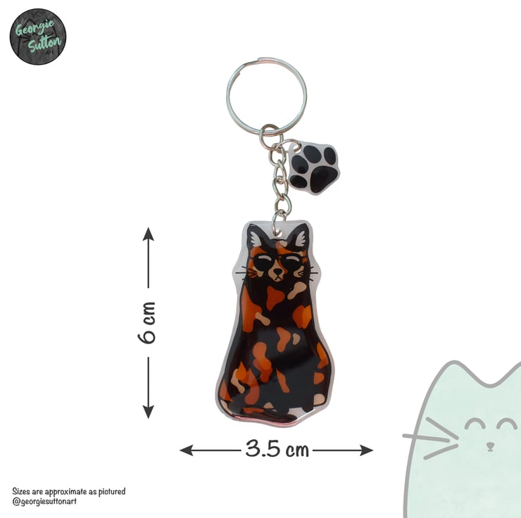 This cute little tortitude cat keyring is the perfect gift for a cat mum or dad, or even just a gift for yourself! The keyring has been designed by myself and each one is made to order. The design features a little tortie cat wearing sunglasses.
