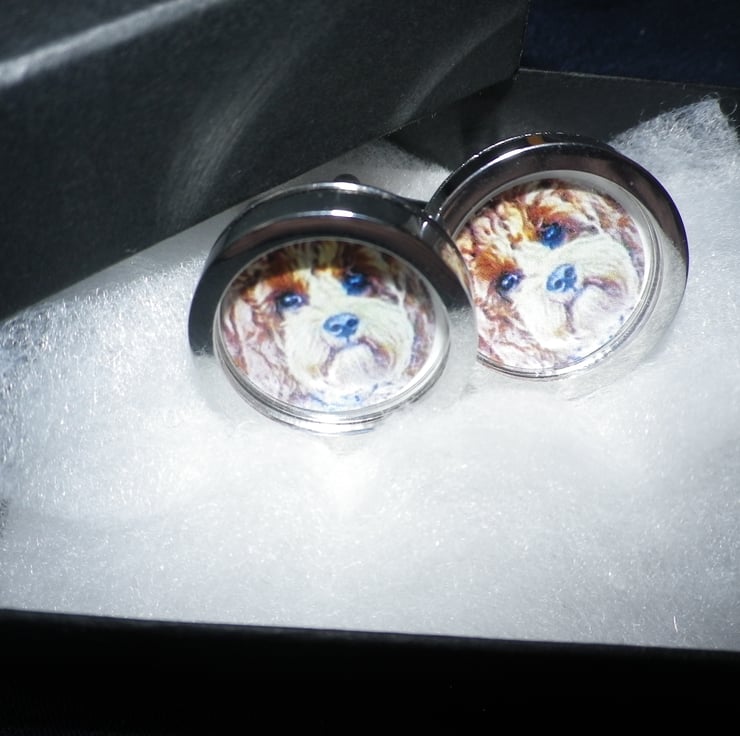Cockapoo Puppy cufflinks, free shipping, gift wrapped, lovely image, Ref0753